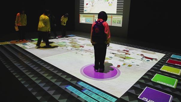 地面互動投影系統(tǒng)采用懸掛在頂部的投影設(shè)備把影像效果投射到地面,當(dāng)參訪者走至投影區(qū)域時,通過系統(tǒng)識別,參訪者可以直接使用雙腳或動作與投影幕上的虛擬場景進(jìn)行交互,各種 ……