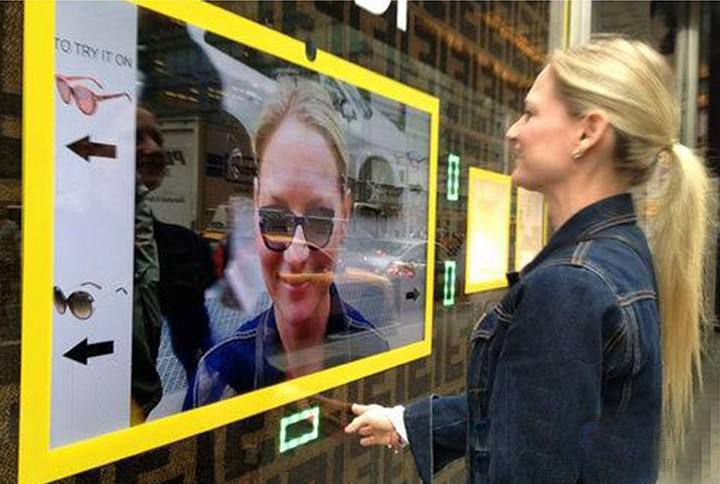 互動櫥窗設(shè)備可將圖像投射到商戶臨街玻璃櫥窗的普通玻璃上(所有互動櫥窗設(shè)備都放置在店內(nèi),畫面尺寸不限),顧客在店外隔著玻璃點(diǎn)擊圖像畫面,在店內(nèi)的互動櫥窗設(shè)備可感應(yīng)到 ……