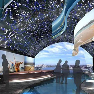 由多塊銀幕組成,通過多臺投影機(jī),采用投影融合技術(shù),創(chuàng)造出超大無縫的逼真畫面。利用電影自身特有的技術(shù)優(yōu)勢,使觀眾在高質(zhì)量的聲畫環(huán)境包圍之中,產(chǎn)生身臨其境的強(qiáng)烈的現(xiàn)場 ……